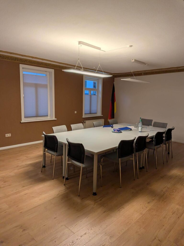 - Zentrum der Verbandsarbeit: Hier finden die regelmäßigen Sitzungen des Kreisvorstandes sowie Treffen unserer Facharbeitskreise statt. Die Geschäftsstelle dient zudem als vertraulicher Ort für den internen Austausch unserer Mitglieder.